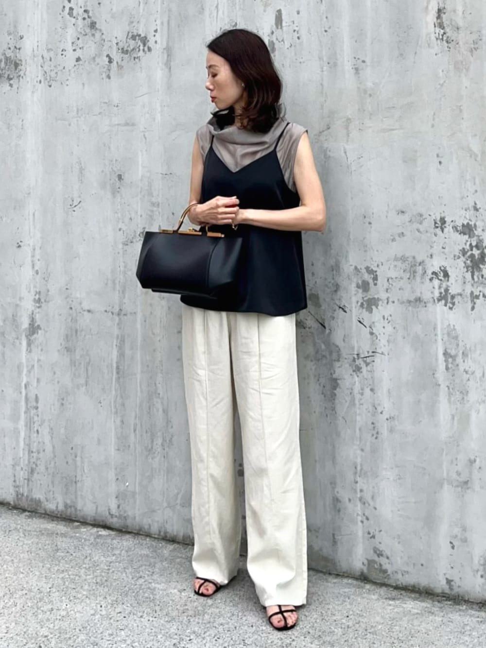 出社日#オフィスカジュアル 【トレンドの重ね着キャミはプチプラで】 デニム買おうと思って久々にGU行って見つけた サテンキャミが可愛かった💓 3桁プライスだと悩むことなく購入できますね シアートップスに重ねると今年っぽい パンツは昨年買おうか迷って時が流れた リネンブレンドプルオンパンツ 試着したらすごく良かった〜 涼しいしウエスト部分がドローストリングなので ストレスフリーです 引きずりそうで引きずらない丈感もgood🙆♀️ デニムは色々試着したけど似合わなかった🤣 インスタ→@soliabe5787