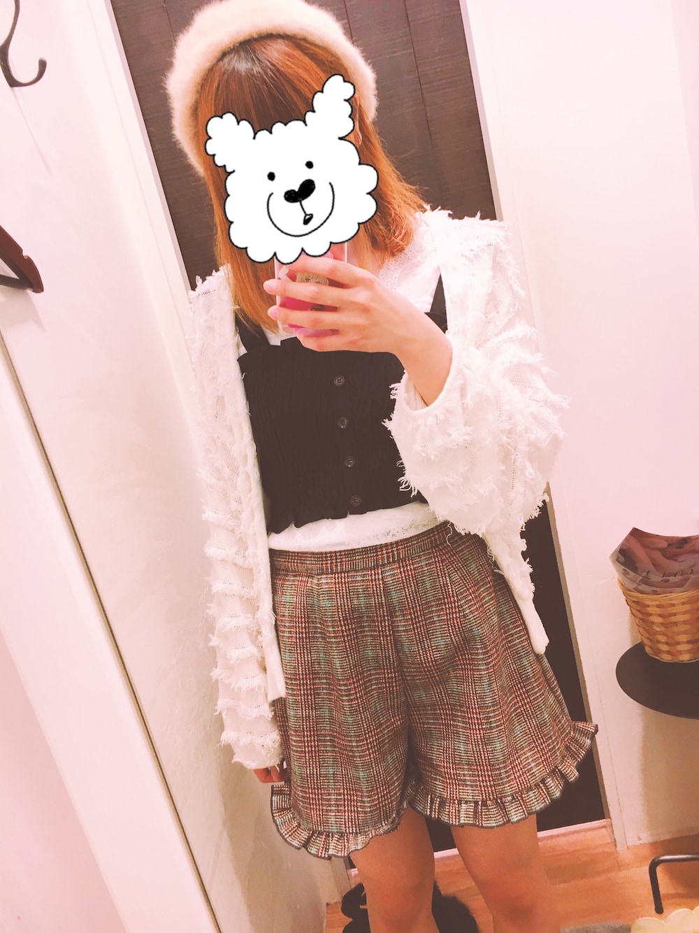 最近お気に入りのコーデ😍 チェック柄のパンツがお気に入り!💓 ベレー帽被ると秋コーデ感増すから、必需品になってる〜😌👍🏻