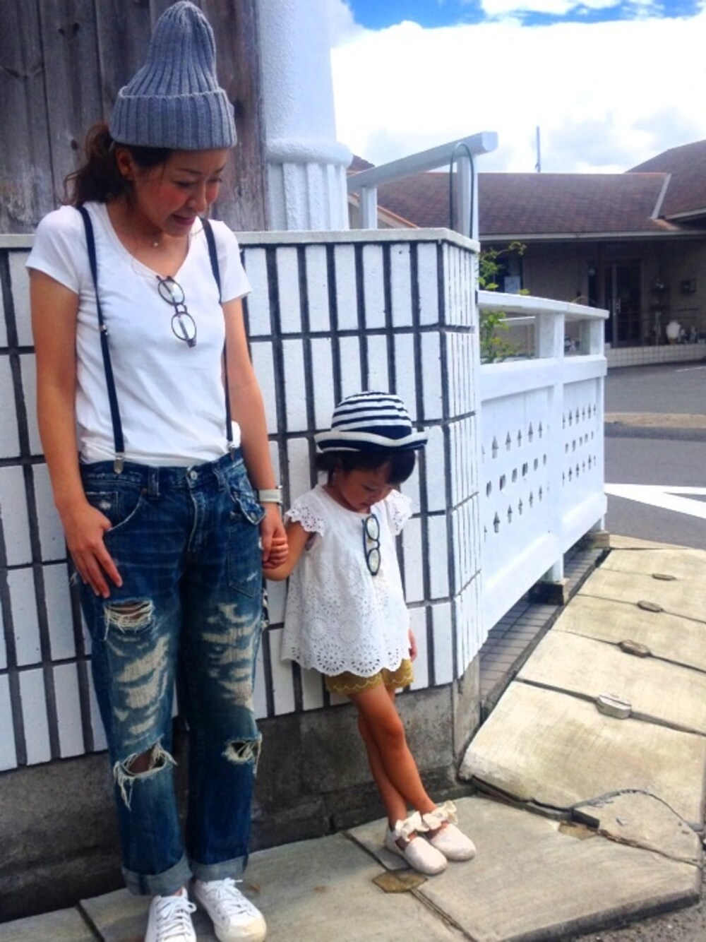 親子でブラブラしよっかぁ〜♪(´ε` ) 去年買った娘さんの短パン★ 完全にサイズアウトだけど、娘さん腰回りが細いから全然着れるじゃーんって♡♡ あはっ(^-^)/笑 私も何年かぶりに、RNA Inc.のデニム 履いてみた(^-^)/ サスペンダーしたら、この形でも履けるかな… とっても暑い一日でした♡ happy days♡