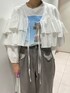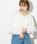 Tシャツの上にクロップドフリルデザインブラウスを羽織るだけで一気におしゃれ度upします✨ キレイめコーデなら中にカップインキャミソールを着てスッキリさせるのもおすすめです😊