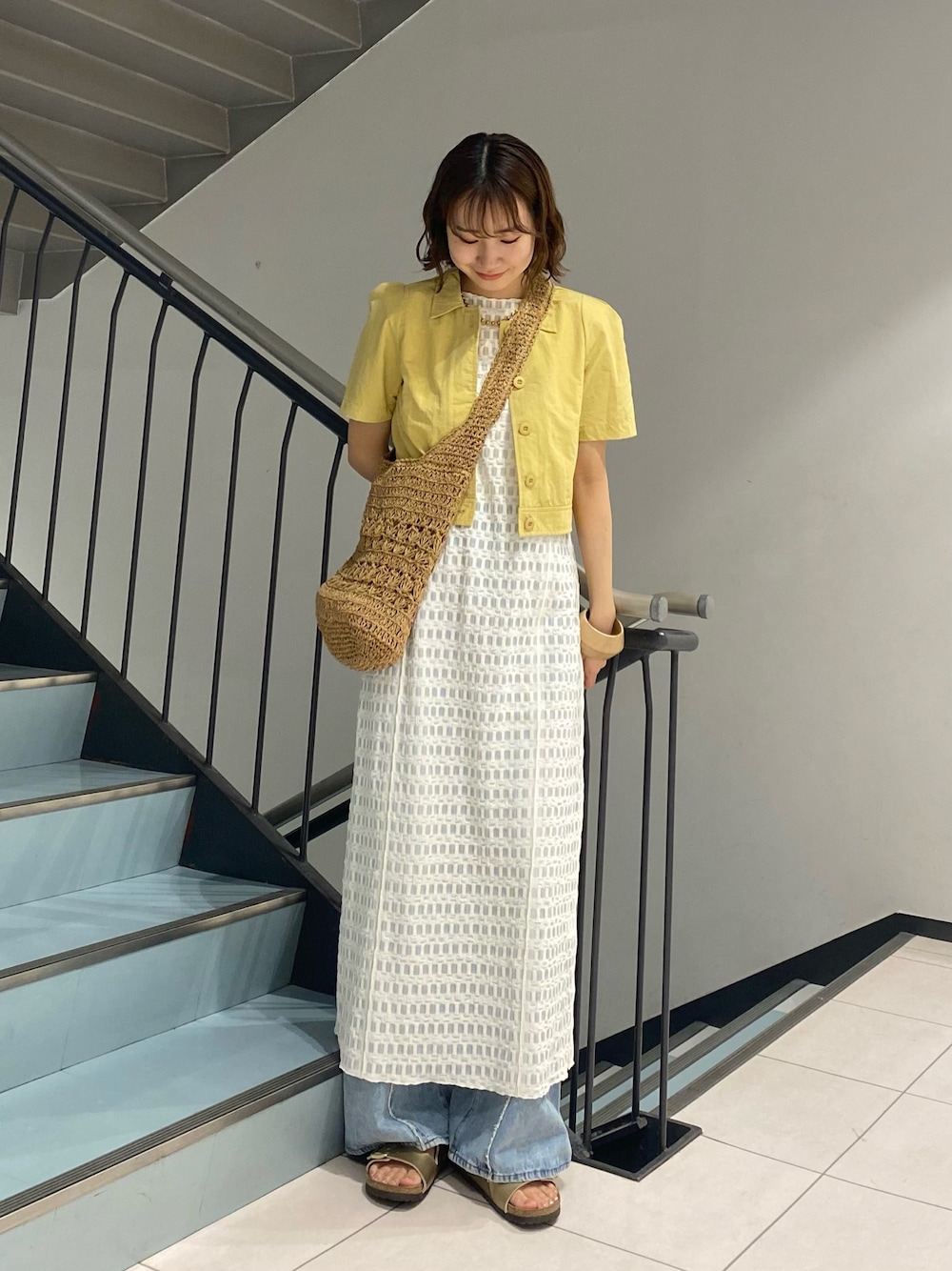 新作のジャガードレースIラインワンピースでレイヤードコーデしてみました🍋 ワンピースは程よい透け感が可愛いです🤍
