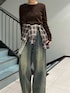 チュールレイヤードシャツは着るのはもちろん可愛いですが腰巻きしてもデザインが可愛いのでおしゃれに巻けます!生地もチュール素材と薄いので着膨れせずに使っていただけます