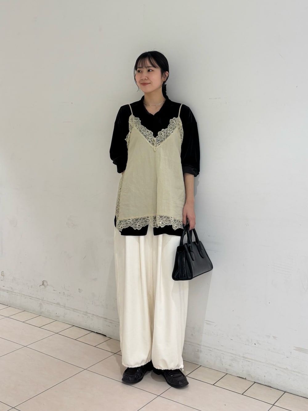 大人気のヴィンテージライクレースキャミソール! スウェットやニットの中に着て、裾のレースをチラッと見せるのも可愛いです🤍