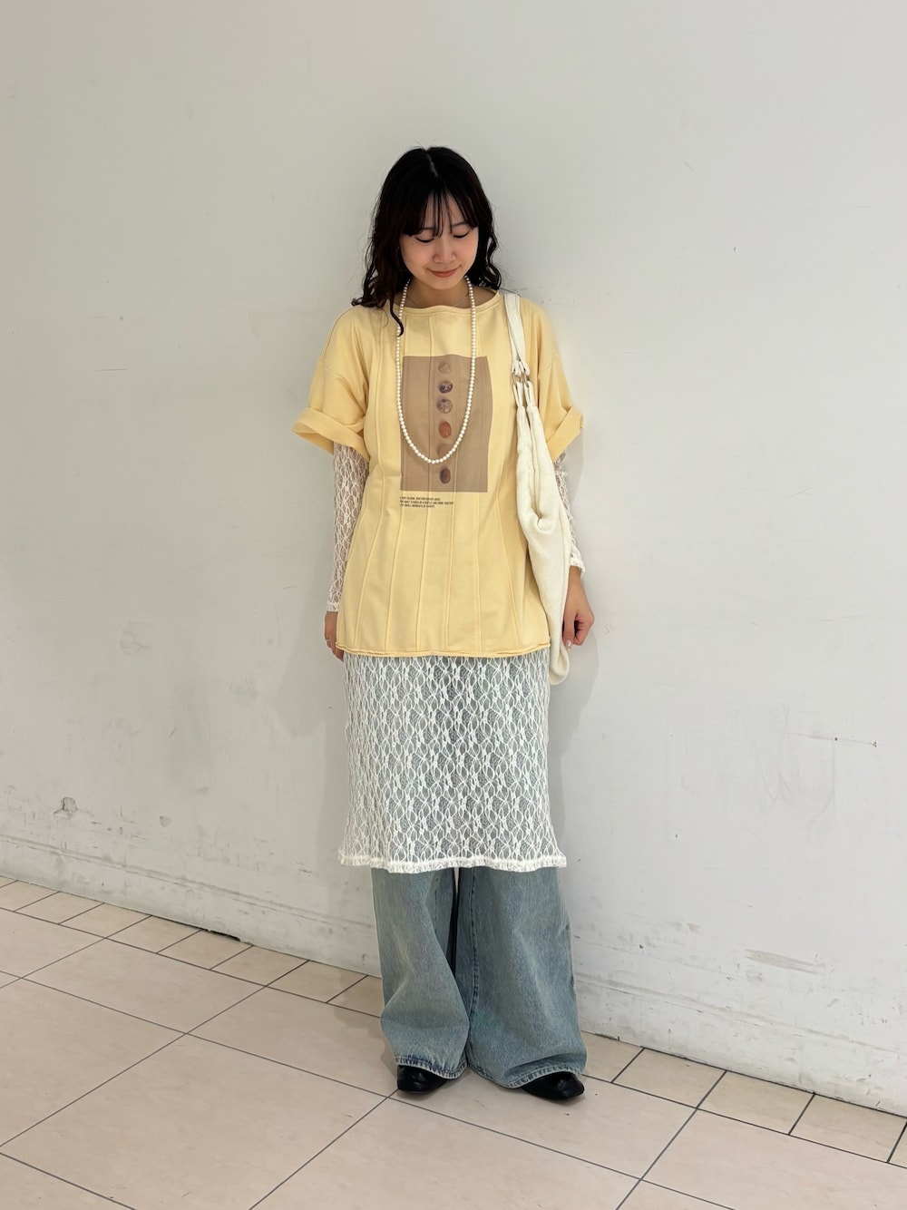 プリントデザインがとっても可愛いピンタックフォトプリントTEE✨ レースロングワンピースとレイヤードするとよりおしゃれ感が増します☺️