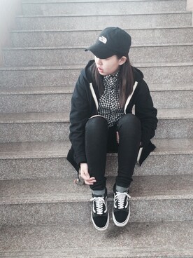 「VANS(バンズ)のアイテム(シューズ、ブラック系)」を使った、yiさん(レディース・165cm)の冬コーディネート