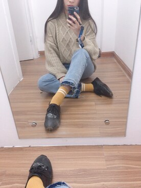 「纳凉のアイテム(ニット/セーター、ベージュ系)」を使った、你的名字很好听呀_さん(レディース・155cm)の冬コーディネート