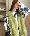 yiigogoのベスト「パッと目を惹くコーデの主役。ボリュームプードルフェイクファーベスト」を使ったコーディネート