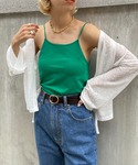 ●2WAYシアーカーディガン ボレロ風に着たり、カーディガンとしてきたり、リボンを後ろに持ってきたプルオーバータイプで着たりと様々な着こなしが楽しめるアイテムです◎ ひざ日焼け効果もあって今持っておくの真夏も使える万能は一枚! ●アメスリコードストラップキャミ 伸縮性、着心地抜群のキャミソール! パット付きでこの夏万能に使える一枚。 目を引くカラー展開で、インナーに持ってくるだけでさりげないおしゃれ感がUP◎ バックオープンデザインのトップスなどに合わせることで後ろデザインもうまく活用できますよ♪