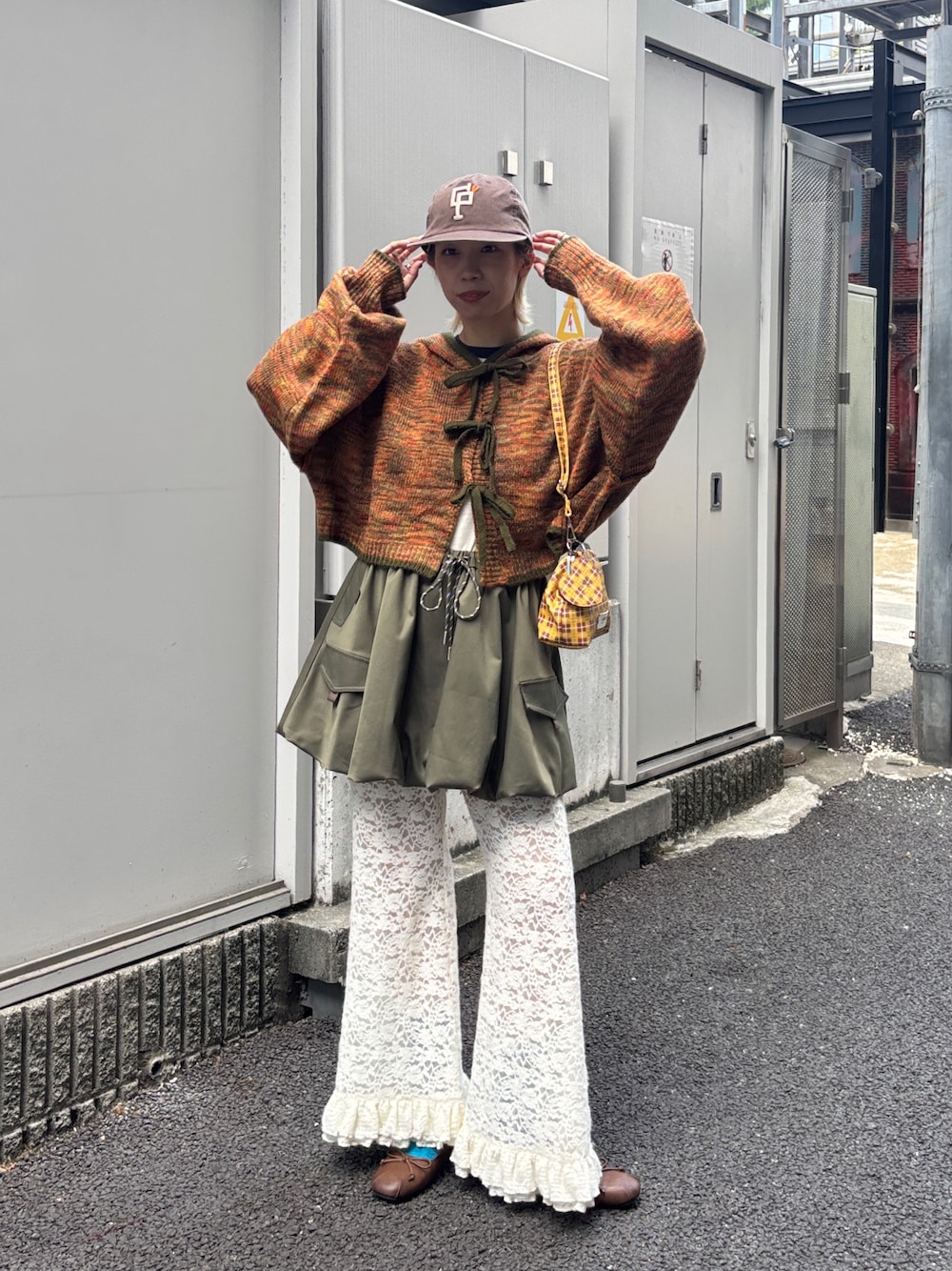 カジュアルだけどガーリー要素も加わったアースカラーコーデ♡