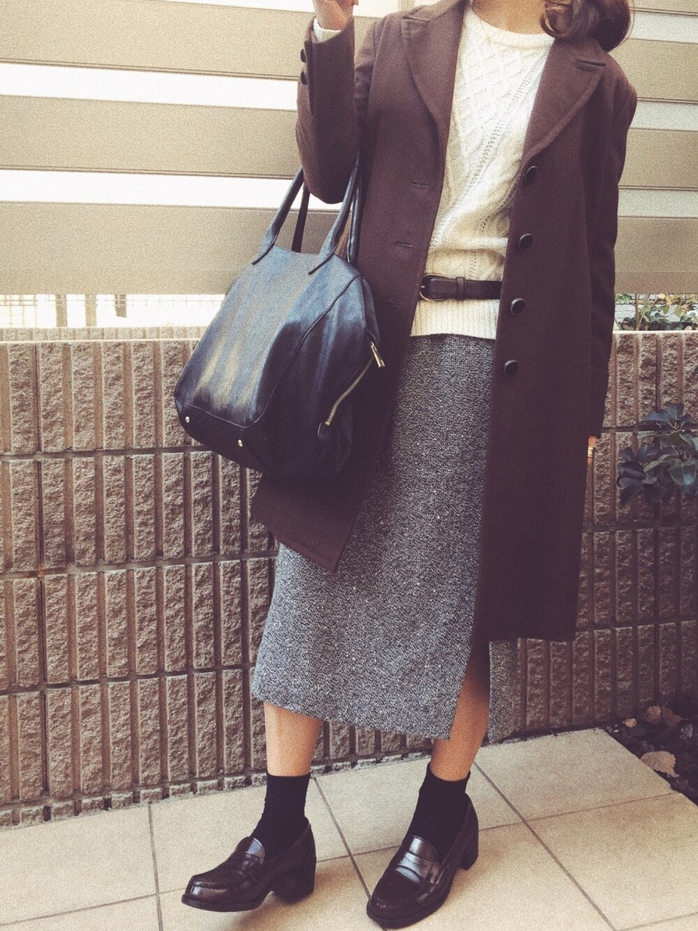今日もおばあちゃんお手製コートとタイトスカート☺️一生だいじにするやつ!