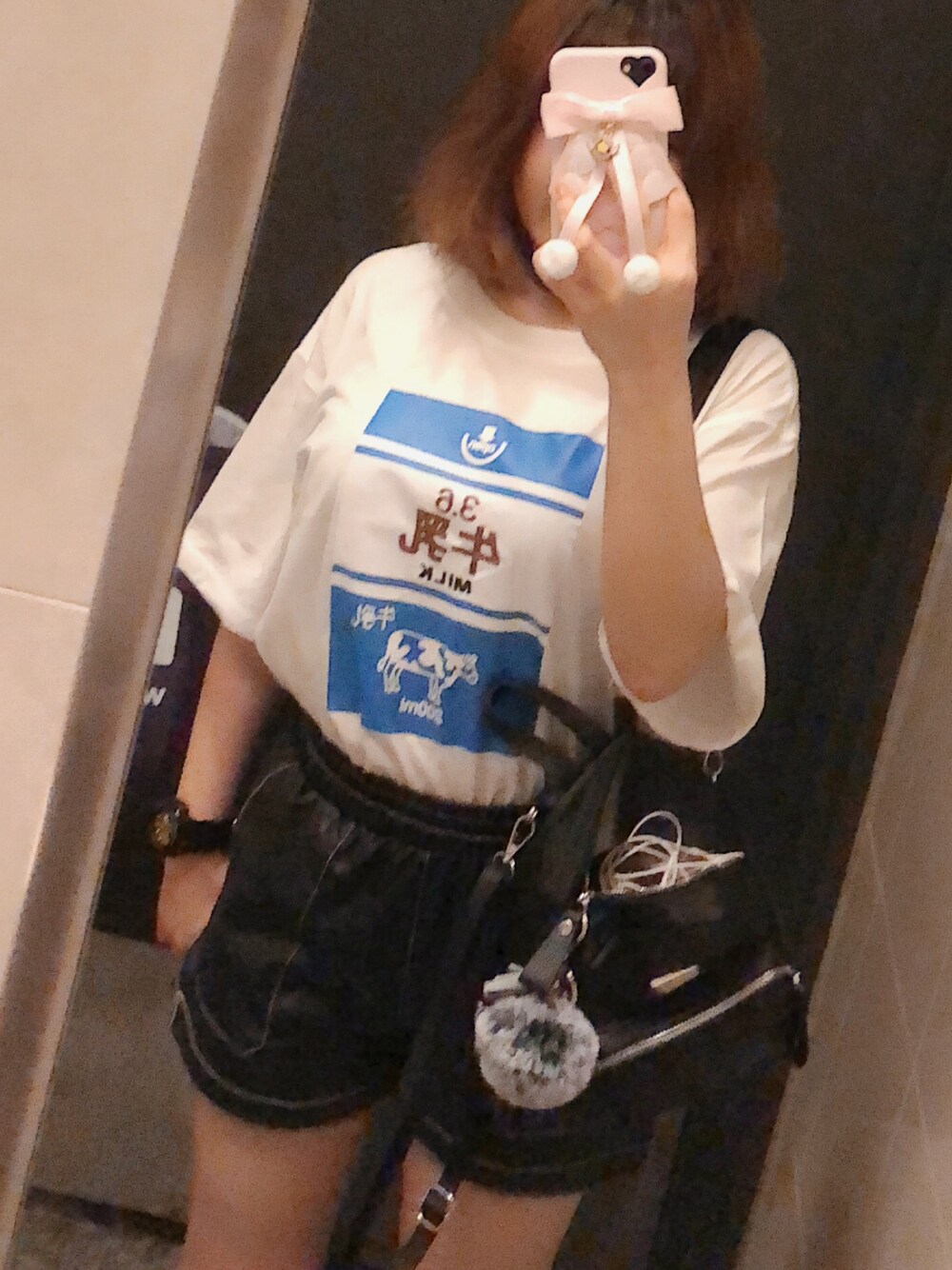 Milk Pattern Leather Shorts Be Lively