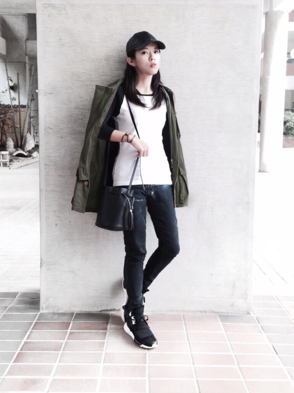 Top - American Apparel Bottom - MOUSSY Outer - Neighborhood Sneaker - Y-3 Qasa Cap - FIG&VIPER Sock - 靴下屋 Bag - GU