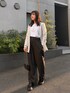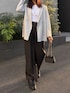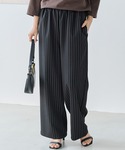 今週発売予定のジャケットにストライプパンツを合わせ、キレイめコーデに🤍 パンツはゆったりしていてウエストゴムなので、楽ちんに着ていただけます◎ 160cm/骨格ストレート