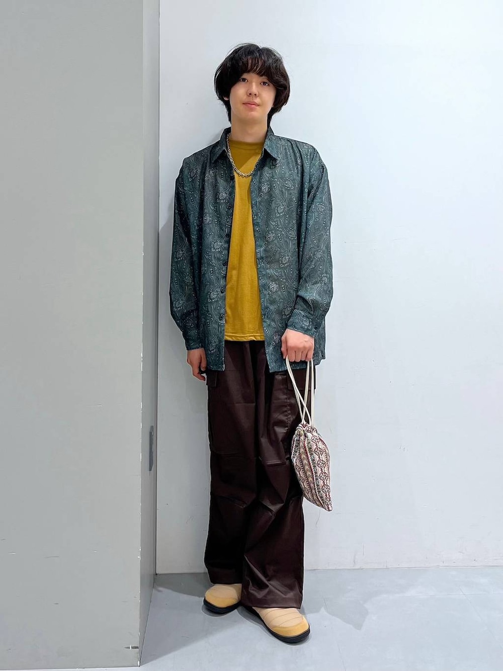 ご覧いただきありがとうございます〜!🙌🏻 今回は「メッシュペイズリープリントシャツ」を使用したスタイリングの紹介です!👏🏻 「メッシュペイズリープリントシャツ」はさりげない透け感のある細かなメッシュ素材でできており、インナー次第で様々な楽しみ方ができる1着です! ペイズリーの柄がプリントされているため、ボタンを閉めても開けてもコーデの主役になります!🙌🏻 ◎コーデのポイント ペイズリーのプリントシャツにカーゴパンツを合わせ、キレイめカジュアルなコーデに落とし込みました! トップスの色と相性のいいイエロー、ブラウン系をアイテムに散らし、スタイリングに統一感を持たせました!🍂 是非ご参考ください! ◎サイズ感 トップス→ややゆったり インナー→ジャスト ボトムス→ジャスト