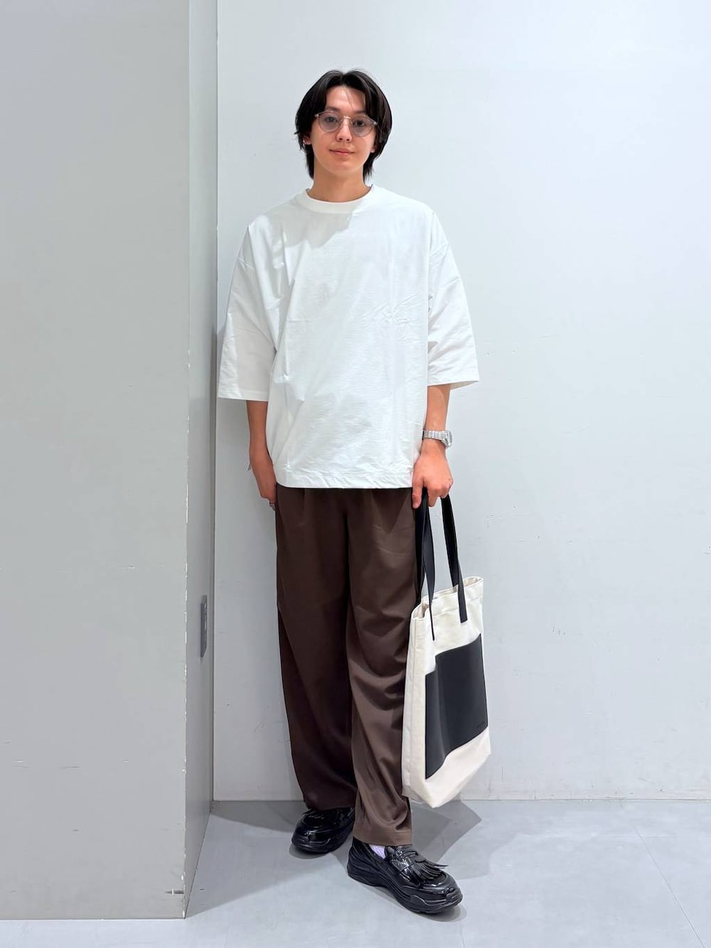 ご覧いただきありがとうございます!🙌🏻 今回は「ドライタッチフハクライクT」を使ったスタイリングの紹介です!✨ 「ドライタッチフハクライクT」はサラッとした肌触りの良い素材でできており、汗をかいてもベタつかず一日中サラッと着れるのが大きな特徴です!🎐 是非ご参考下さい!💫 ◎サイズ感 トップス→ややゆったり ボトムス→ジャスト