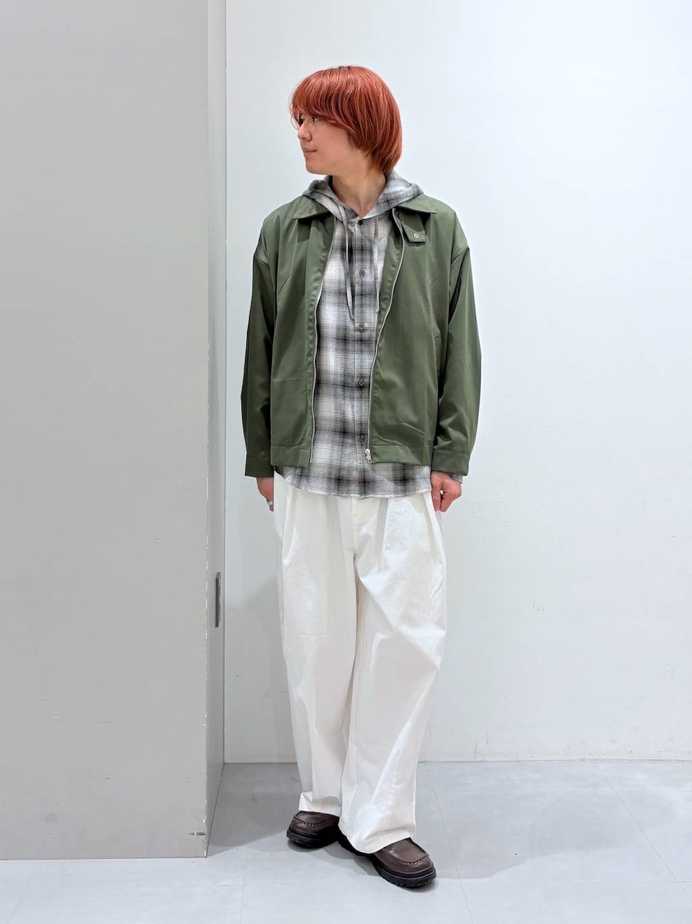 ご飯いただきありがとうございます!🙌🏻 今回は「バルーンチノパンツ」を着用したスタイリングの紹介です!✨ 「バルーンチノパンツ」は腰周りともも周りはゆったり、裾に向かってテーパードした形でメリハリのあるシルエットになっています!🌟 ハリがあり、しっかりとした素材感なので程良い厚みで季節問わず着用する事ができます! 是非ご参考ください! ◎サイズ感 アウター→ややゆったり パーカー→ジャスト ボトムス→ジャスト