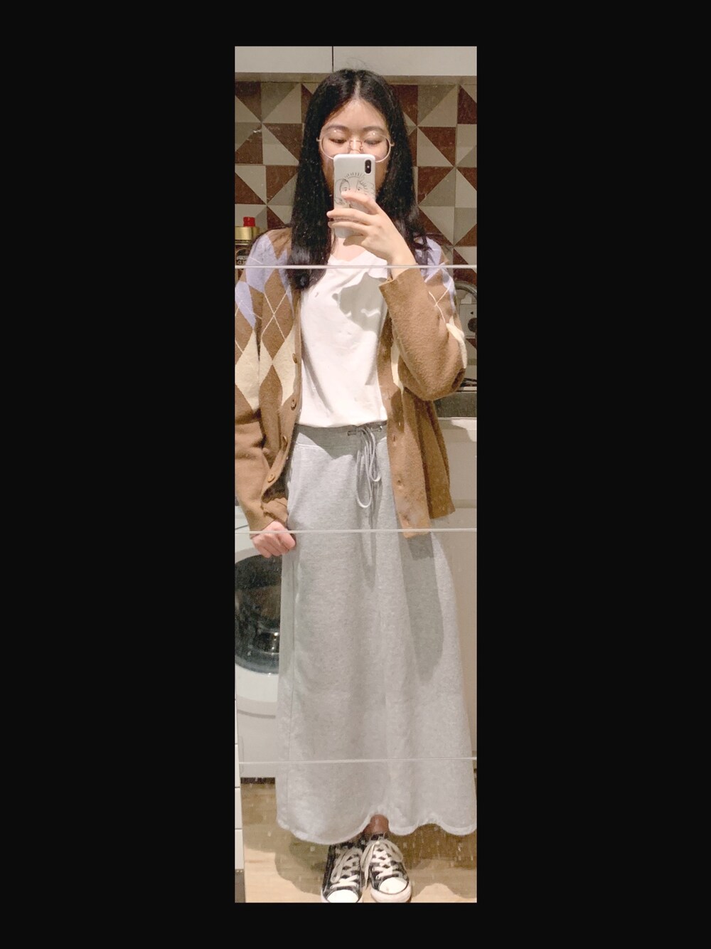 2019.4.10 晴 发现开衫的图案和背后瓷砖融为一体了...