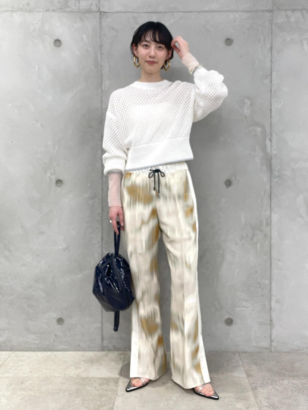 皆様こんにちは。 アミュプラザくまもと店の桑原です。 いつもご覧頂きありがとうございます。 新作を使用したワントーンのスタイリングのご紹介です。 明るい白を着るだけでも春らしく、気分が上がります♡ とろみある艶やかなプリントパンツはCHICSの物。 スラックス見えする綺麗なシルエット、サテン切り替えのサイドラインがポイントです。 アダムエロペ別注アイテムとなります! 是非ご覧くださいませ。 staff インスタグラム↓ @adam_yuuk95