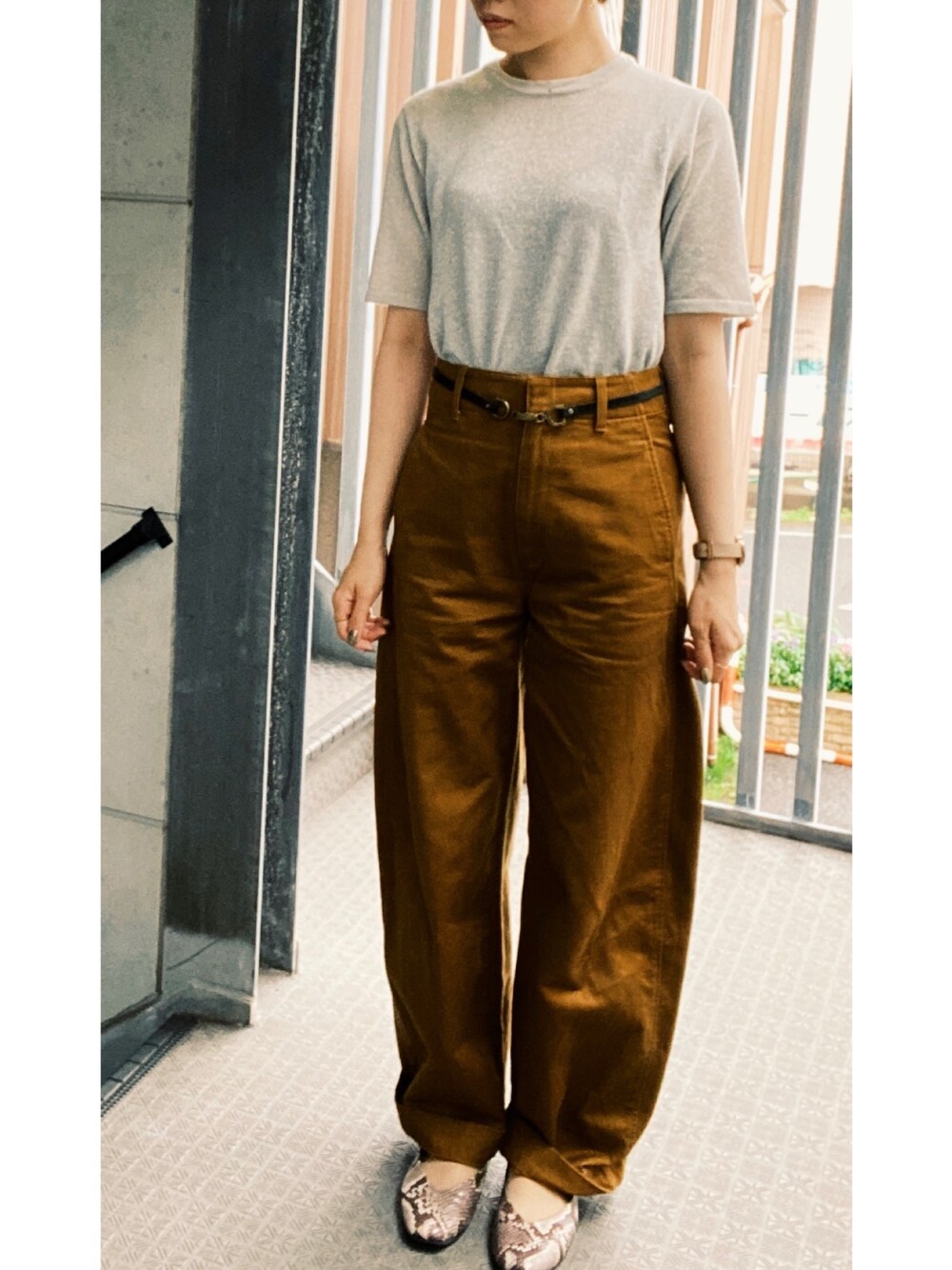 silver×brown 安定のユニクロのワイドフィトカーブパンツ 明るいブラウンの色はどんなトップスにも合う☺️ 折って着るのがすき✴︎