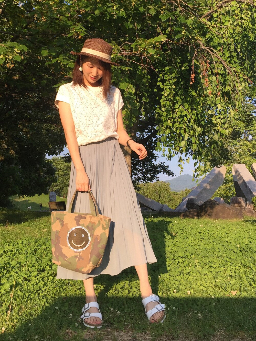 3coins☆GU☆UNIQLO プチプラコーデ😉🌈 上品めなコーデなので ビルケンと迷彩ニコちゃんバッグで カジュアルさをプラス👌💗💗 夕方撮ったから暗めになっちゃいました🌇😂 見て頂きありがとうございます🌼🌼🌼 Instagram✈︎✈︎✈︎yktaaaan3jsb