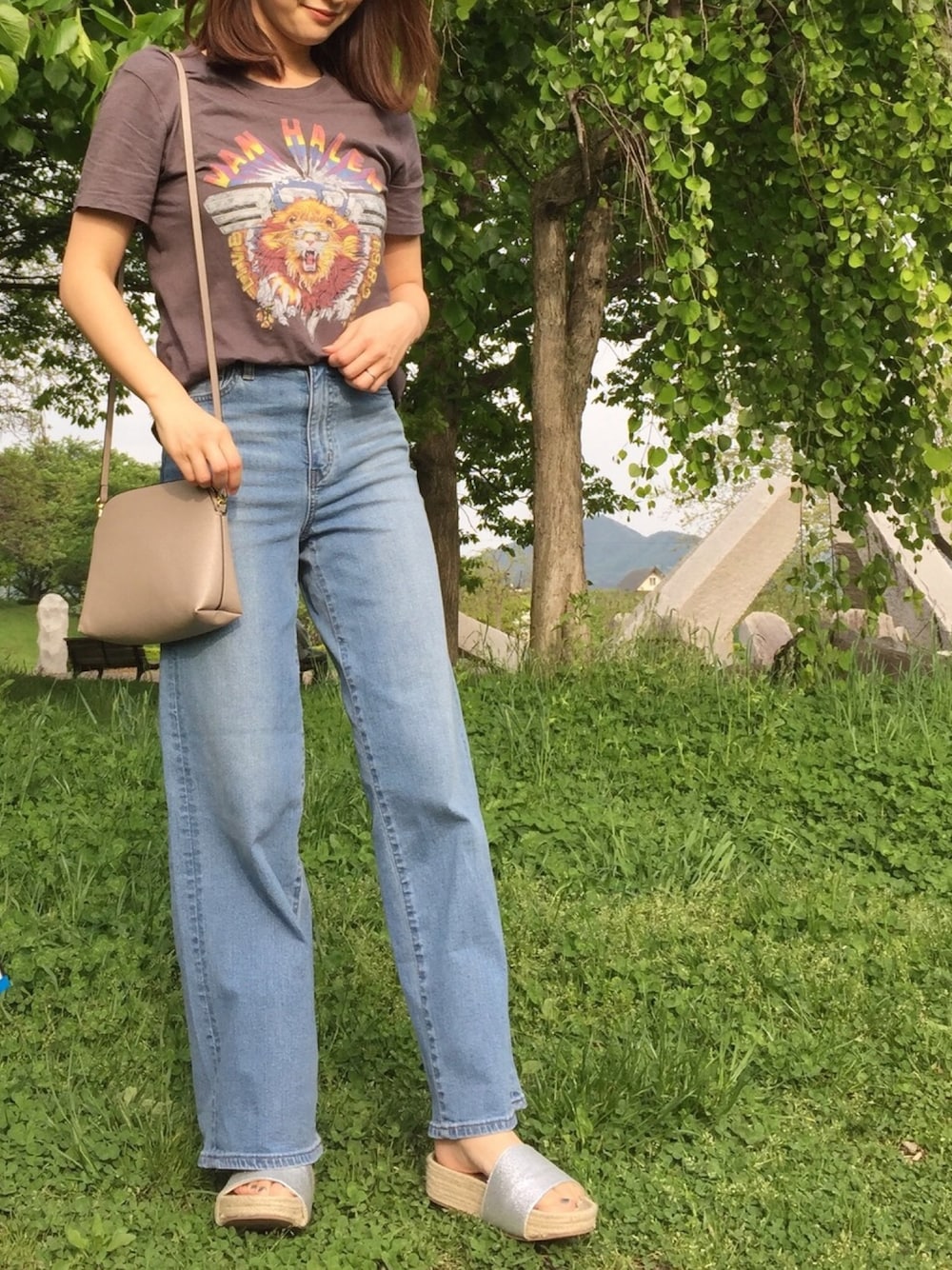 久しぶりのロックT🦁🎸⚡︎ シンプルにデニムとサンダル合わせ。 ユニクロのワゴンにて1,290円だった ハイライズワイドジーンズをGET👖❤︎ 22インチで丈もウエストも 何もかもがピッタリでびっくり‼️ こんなにしっくりくるデニム 久しぶりに出会いました😍 見て頂きありがとうございます🌺 Instagram✈︎✈︎✈︎yktaaaan3jsb