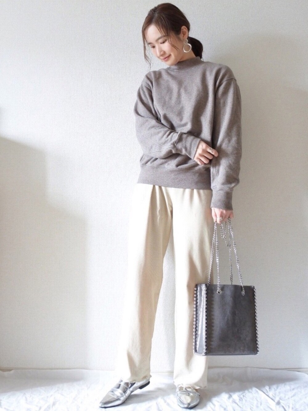 UniqloUのスウェットプルオーバー着回しです☕️♡ ベロア素材のリブパンツと合わせて ゆるめなコーデに☺︎ 見て頂きありがとうございます💫 Instagram➡︎yktaaaan3jsb