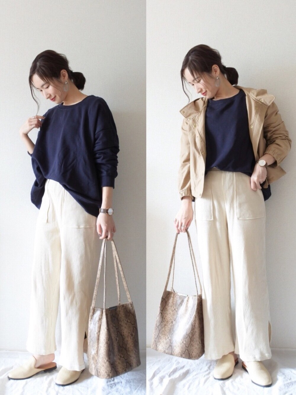 ベージュ×ネイビー×アイボリー🌸 GU × H&M で1万円以下コーデ😉🧡 見て頂きありがとうございます! Instagram➡︎yktaaaan3jsb