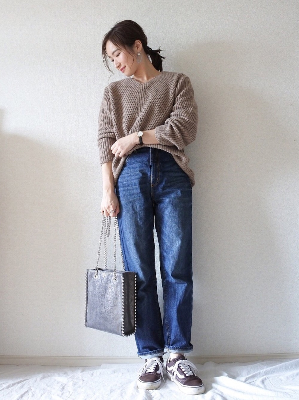 𝕐𝕌𝕂𝕚のニット/セーター「畦Vニットプルオーバー」を使ったコーディネート