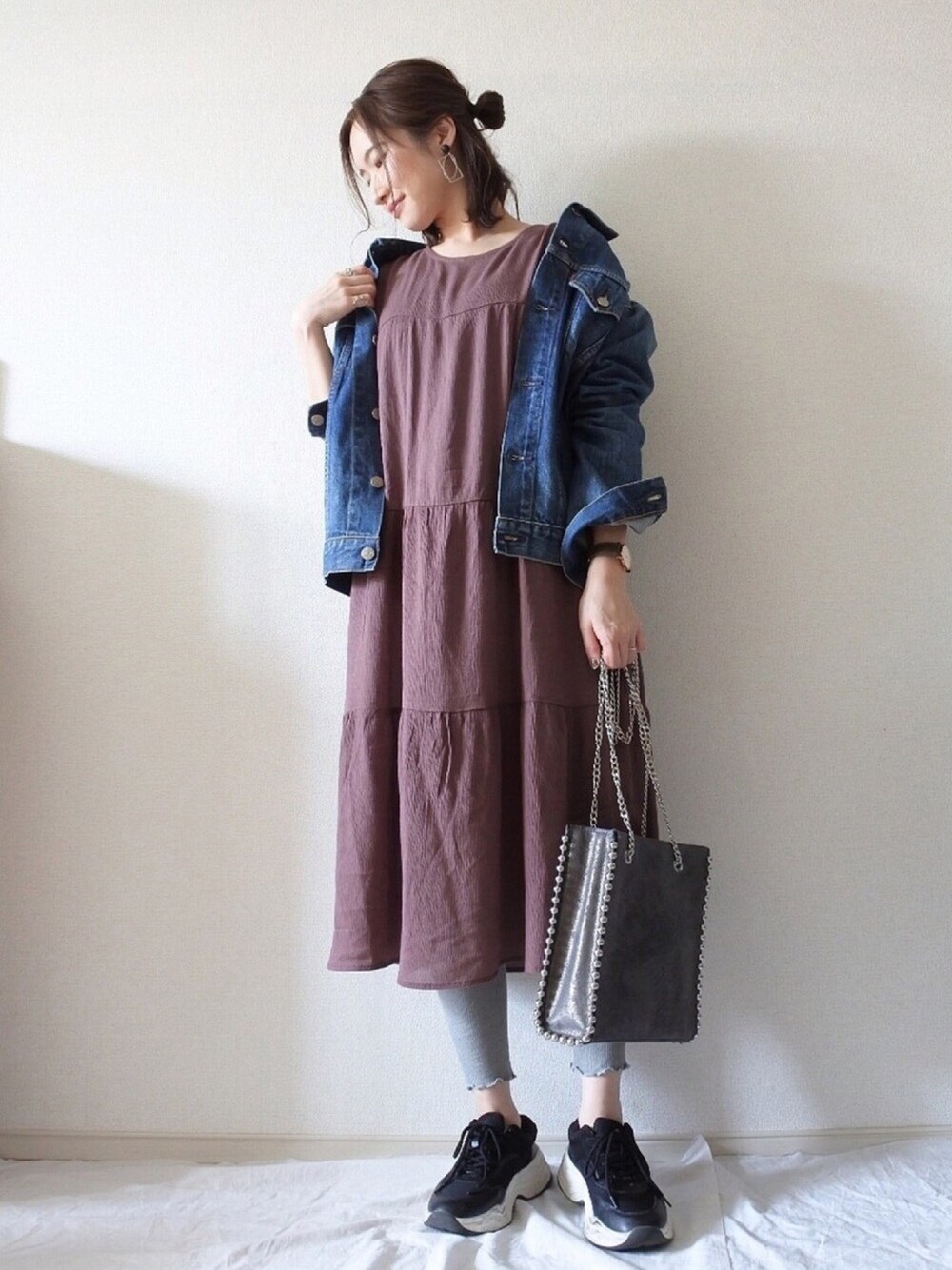 しまむらで可愛いティアードワンピース見つけました👗✨ ブラウンなんですけど 光の具合でくすんだパープルにも見えて すごく絶妙カラーで可愛いんです🐻🍇♡ 詳しい品番やサイズなどはインスタにupしてます🌷 ➡︎yktaaaan3jsb 見て頂きありがとうございます☺︎