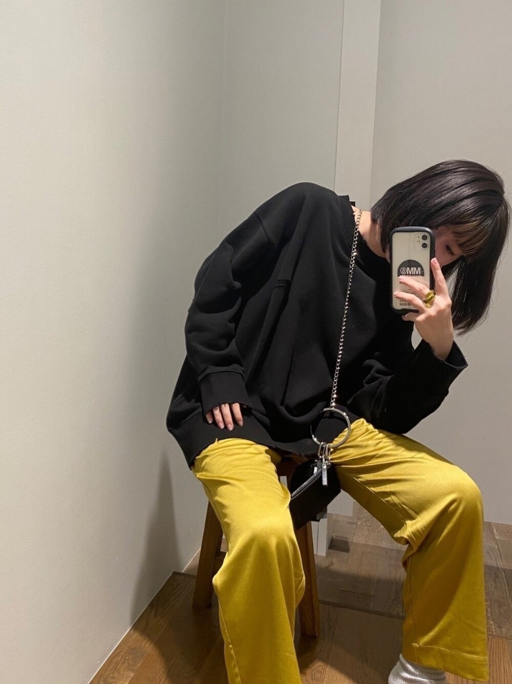 楽ちんコーデ! ゆるゆるコーデだけど、 スウェットにクラッシュがあって パンツもサテン生地だからちゃんとお洒落に見える◎ あとこのbagが可愛すぎる〜 ちょっと出かけるのに便利!