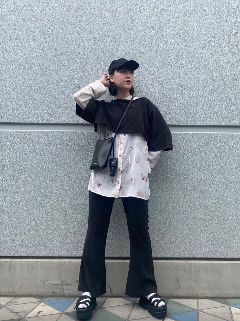 マーブル柄のシアーシャツに ブラックアイテムを◎ 派手になりすぎず 色味可愛くてもスポーティに合わせるのが お気に入り〜!