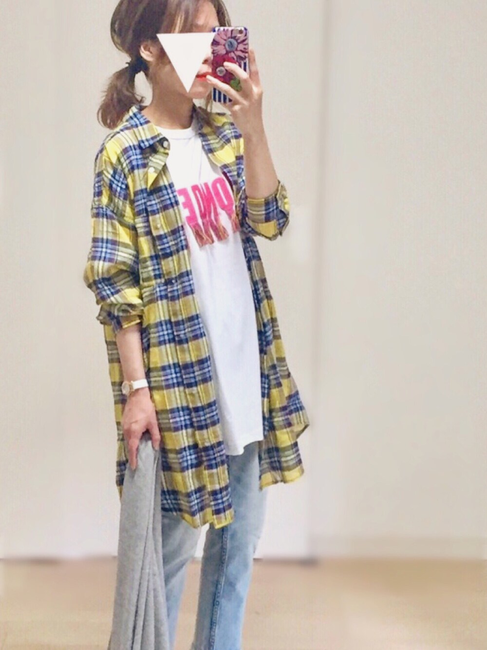 𓎤 ヨコ𓅹のシャツ/ブラウス「チュニックチェックシャツ」を使ったコーディネート