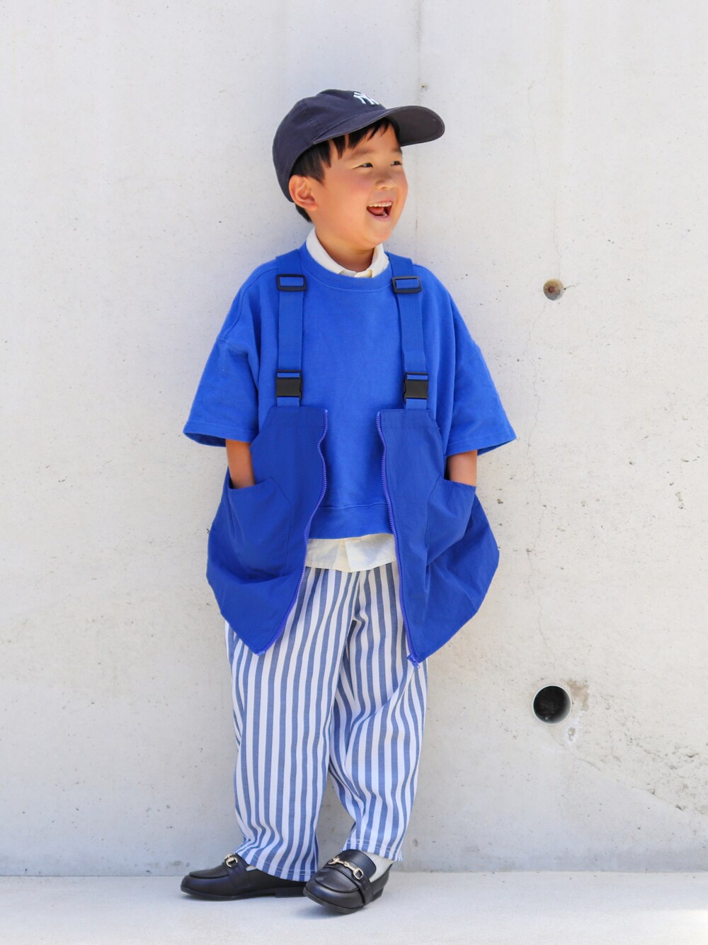 ご覧頂きありがとうございます *°♡ ♡+コメントフォローどれもとても嬉しいです⸝⋆⸝⋆ ありがとうございます◡̈ ◡̈ ◡̈ 大好ききれいめカジュアルコーデの日𓂃 𓃰𓈒𓏸 select shopSILSILでGETした夏用のblueストライプパンツを主役に、blueコーデにしました🫐 ᝰ✍︎꙳⋆ 5y9m/112㎝/19kg