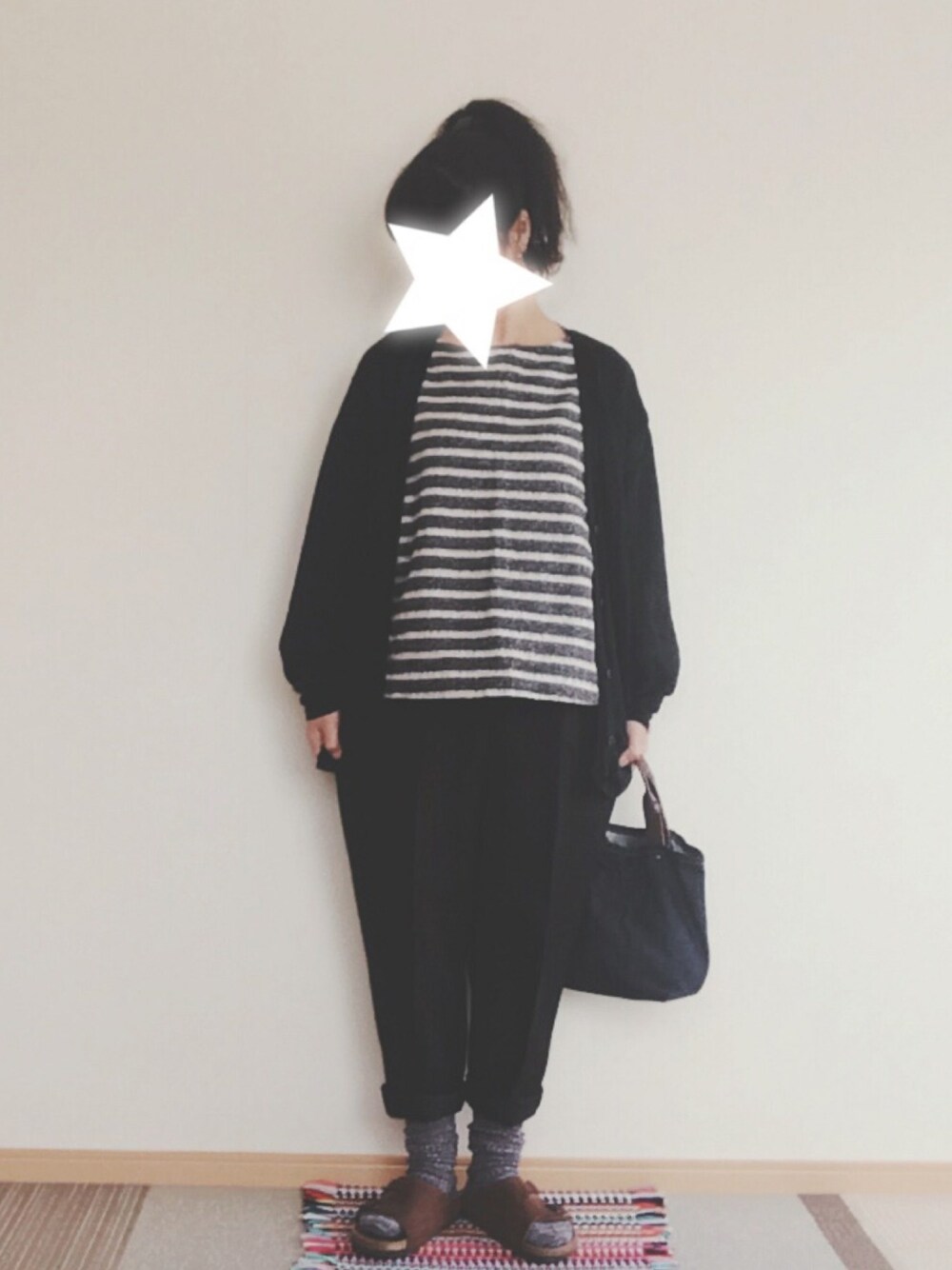 トップス・古着 カーディガン・無印良品 パンツ・古着 サンダル・ビルケンシュトック