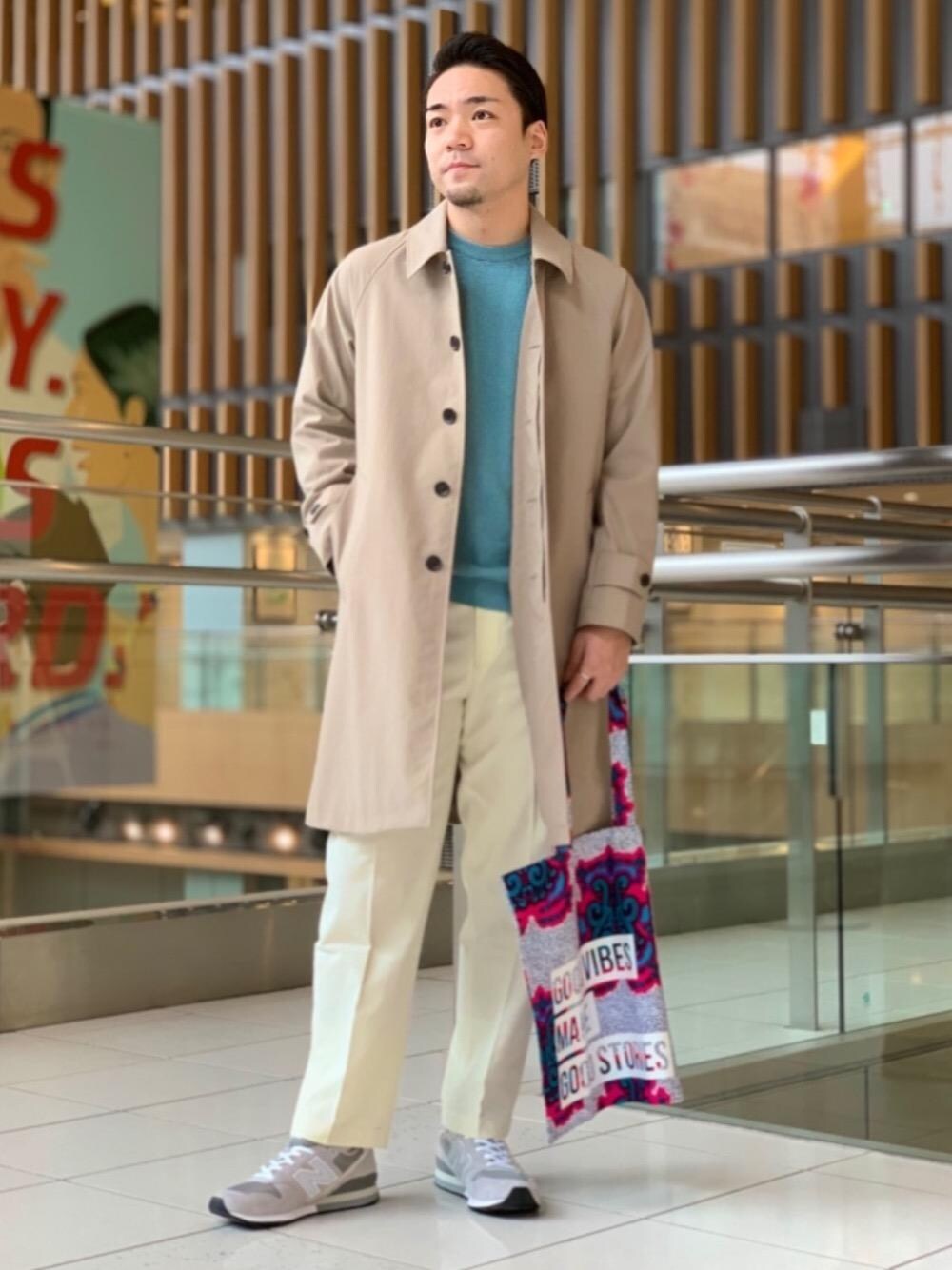 《身長172cm》着用size:outer S/knit S/pants S/shoes 26.5cm(普段スニーカー26.5cm) 春らしいカラーを取り入れたコートスタイル。全体的に程よくゆとりのあるサイズですのでリラックスした印象になります。大人の休日に最適です。