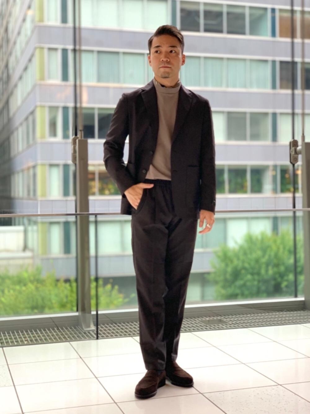 年齢:20代後半 身長:172cm 普段サイズ:アウター、トップス S、M/ボトムス M/革靴 25.5cm スニーカー 26.5cm 《サイズ感》 セットアップ:標準 インナー:標準 シューズ:標準 《スタイリングポイント》 ブラウンがベースのスタイリング。足元はスエードのローファーで上品さをプラス。