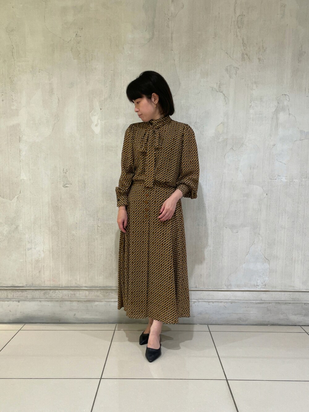 ブラウス10-12-01-004 1サイズ ブラウン スカート30-12-08-503 1サイズ ブラウン サラッとしたジョーゼット素材で、透け感もなく着ていただけるので、1枚で安心して着ていただけます。秋らしいブラウンカラーで、ワンピース風に着れるのでお仕事にもプライベートにもおすすめです。