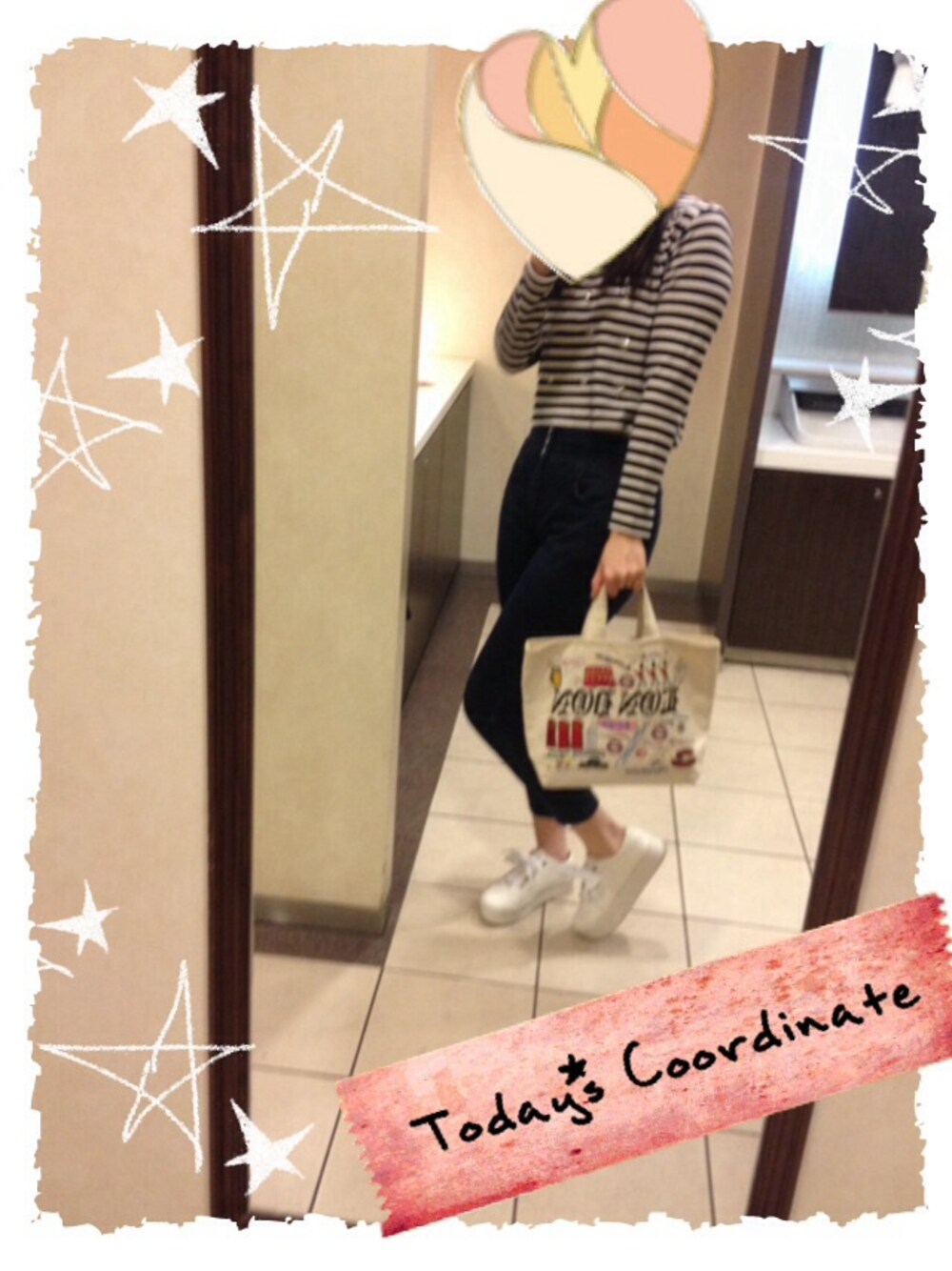友達からプレゼントでもらった お気に入りのBAGをメインにコーデ! ハイウエストデニムに トップスは丈短めボーダーと 定番カジュアルにまとめてみました☆