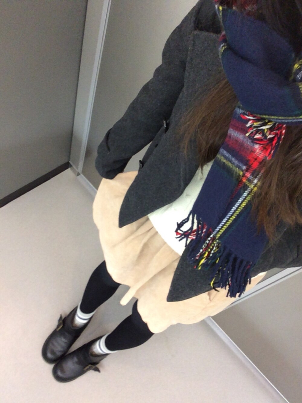 メリークリスマスイブ!🎅🎄 ってことなのでちょっとガーリーに❤️ スカートと白ニットでカジュアルガーリーにしてみました! ほんまはダッフルコートにしたかってんけど、見つからずPコートに、、 大人っぽい感じでね!うん! そんな感じです!