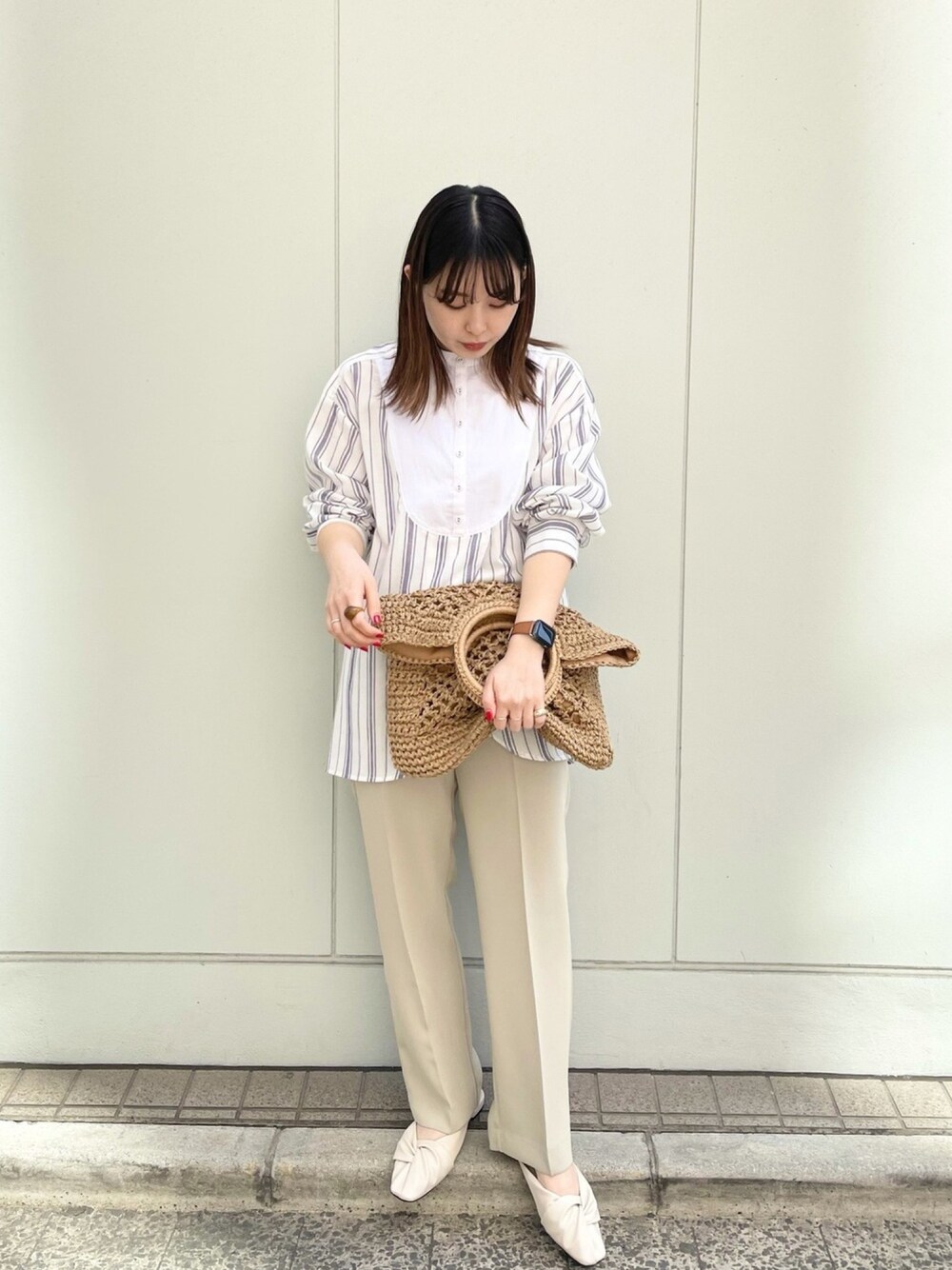 さわやかなブルーのストライプシャツを主役に♡ バッグで夏っぽさも。