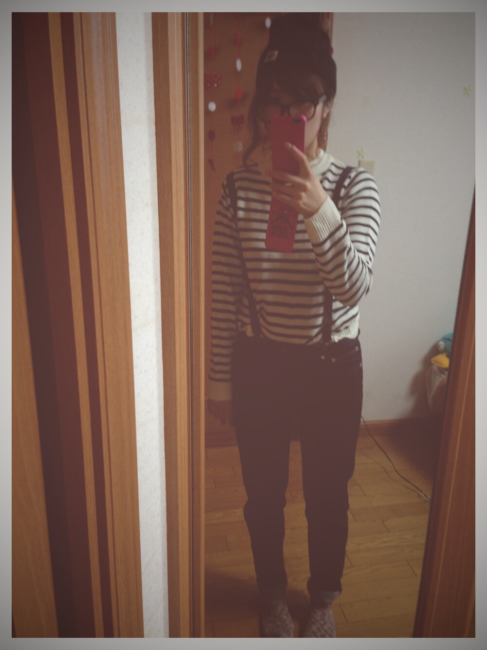 n゚soraのニット/セーター「★新作ニット☆7ゲージアクリルボーダーハイネックプルオーバーロングスリーブ 535414」を使ったコーディネート