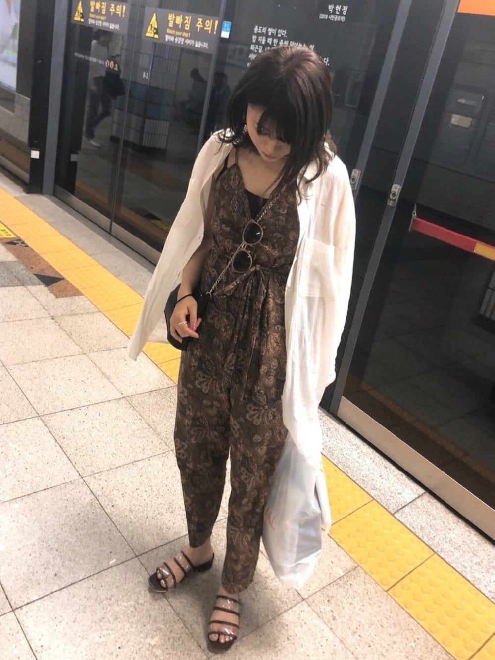 昨日から韓国旅行中です🇰🇷 色々動くので現地調達した ロンパース1枚で楽チンコーデ💛
