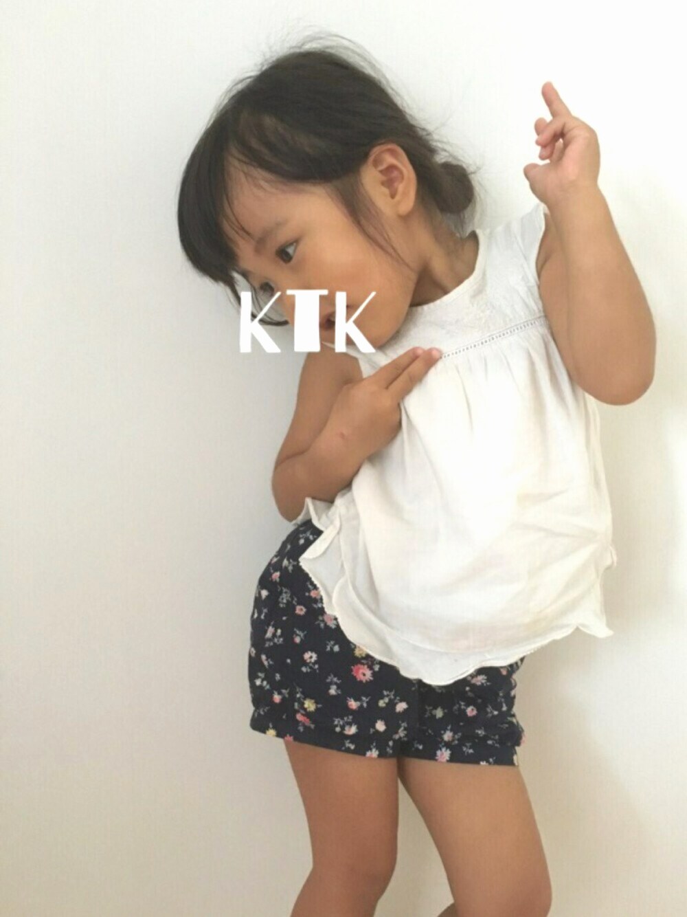 いつもの服で謎のポーズ。 とにかく夏のトップスは白が好き。 白が好きすぎて同じようなの買ってしまう。