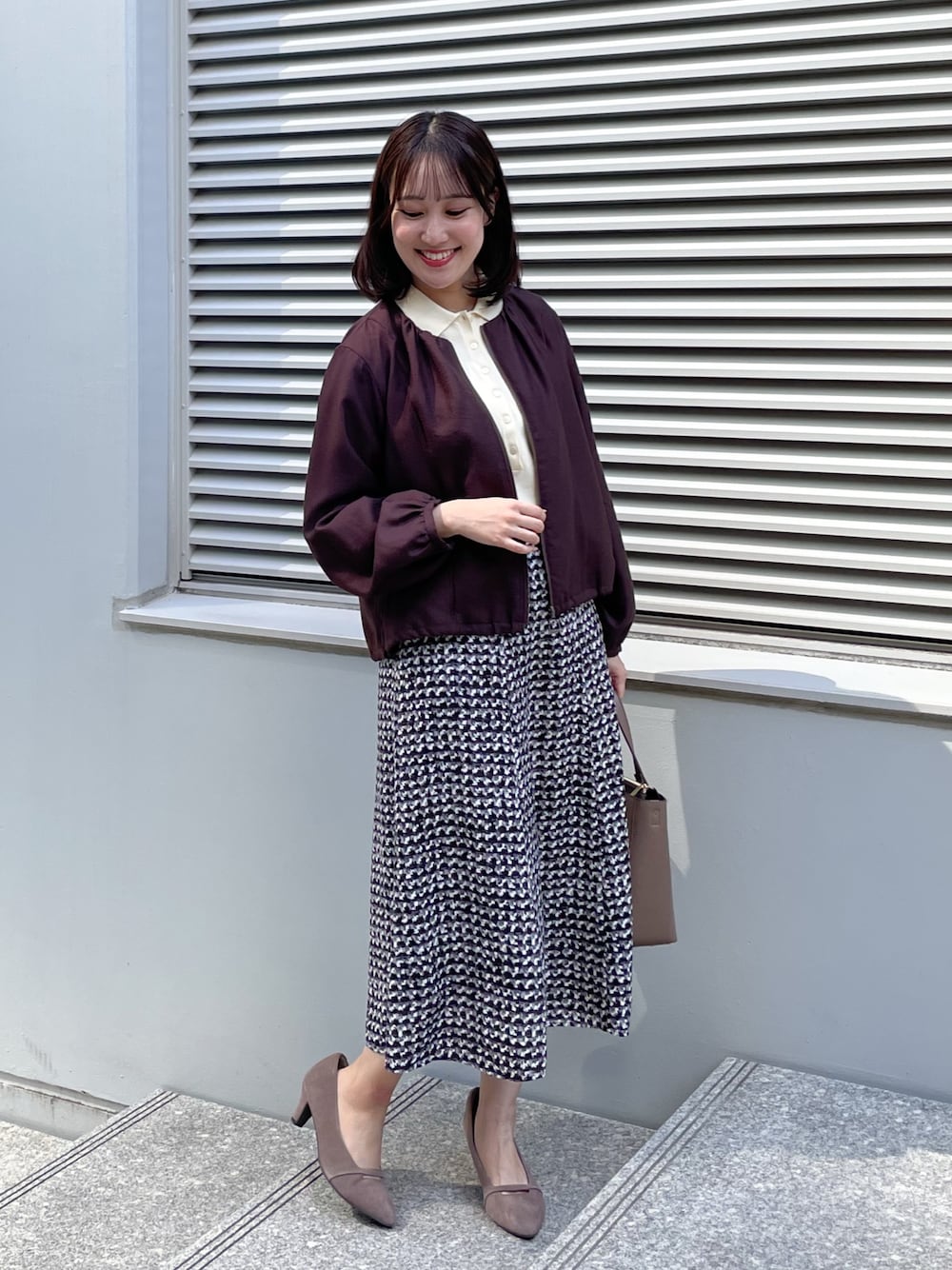 キレイめブルゾンコーデ♡ 華やかな柄スカートを合わせて女性らしい印象にしました。