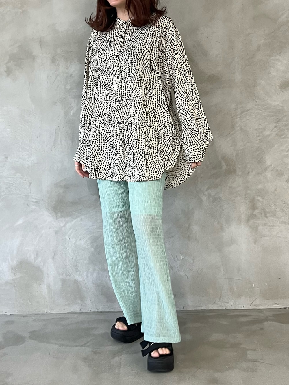 ブルーのパンツが着たくて🥹 野暮ったくならないように、柄シャツでメリハリを🙆♀️