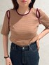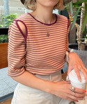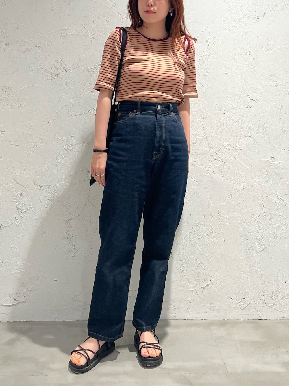 yukiのTシャツ/カットソー「肌見せでヘルシーな、ボーダーパイピングカットアウトTEE」を使ったコーディネート
