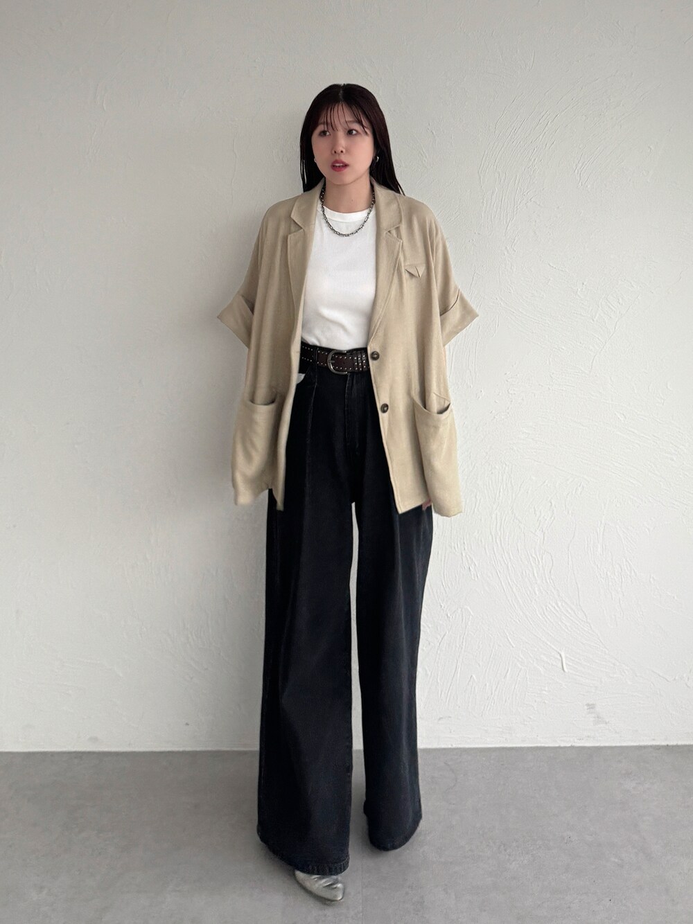 yukiのテーラードジャケット「loose half sleeve tailored jacket / ルーズ半袖テーラードジャケット」を使ったコーディネート
