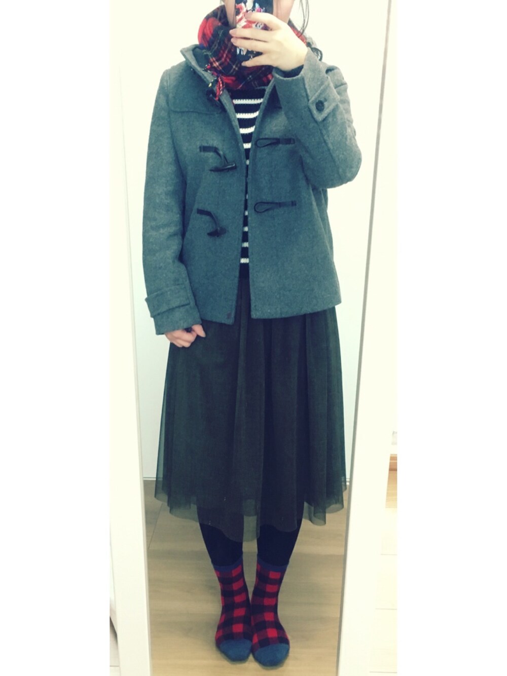おしごとー。 GUのダッフル、安いのに生地ちゃんとしてていいかんじ! ジョンストンズのロイヤルスチュアートのマフラーは、お母さんからのおさがり。 グレー×赤の組み合わせ、だいすき(^^) ブロックチェックのソックスも この時期のお気に入り!