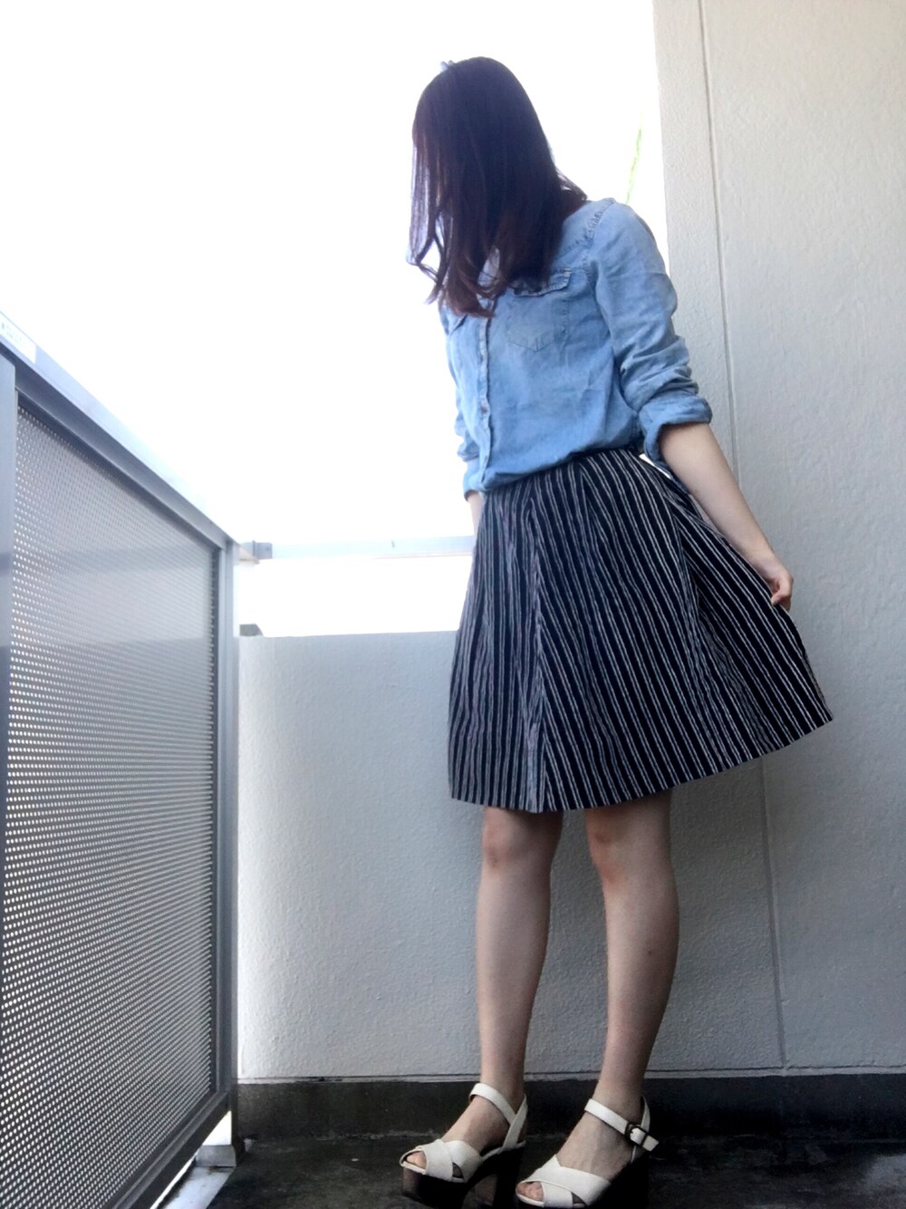 あったかくて春コーデ💓 デニムシャツではずしてカジュアルに。 でもさすがにサンダルはちょっと早すぎました笑