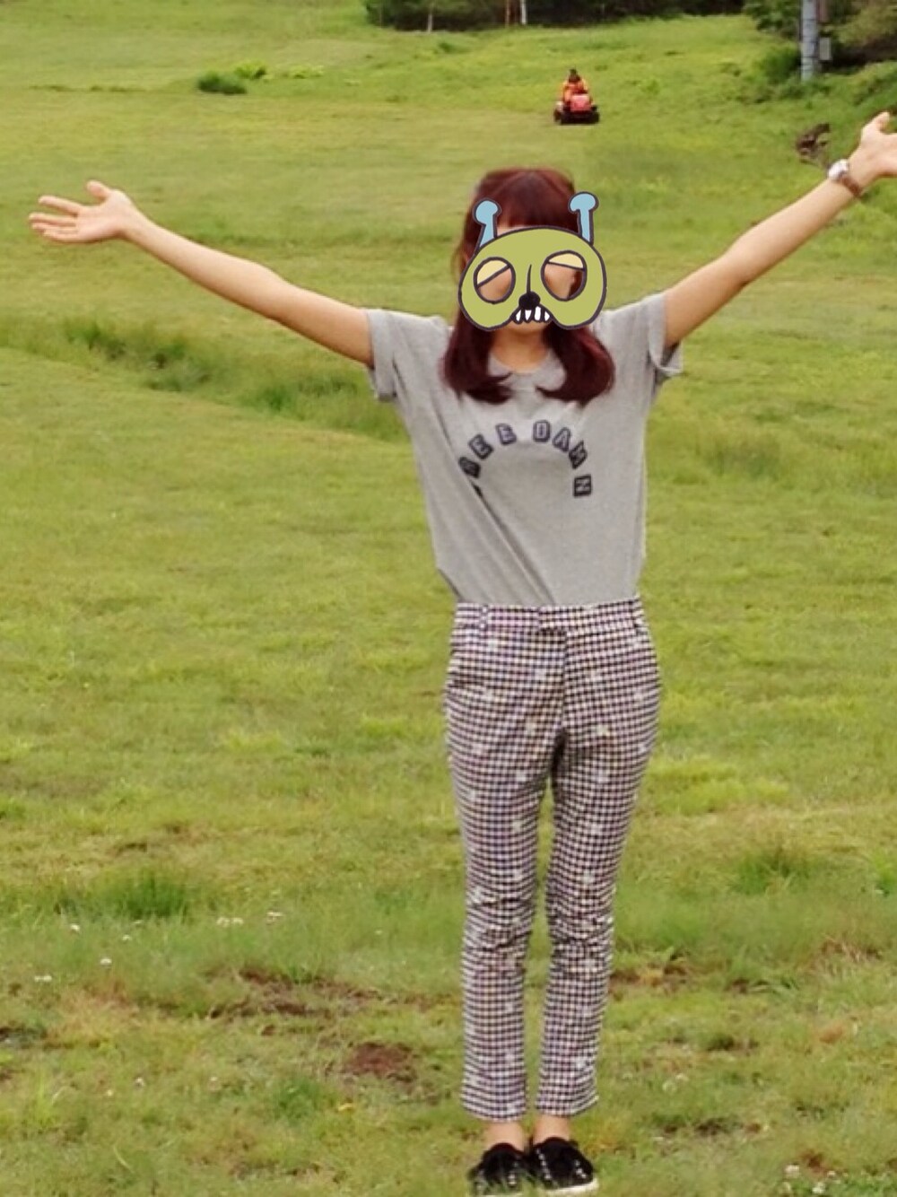 Tシャツ カスタネ パンツ スプリーカラー 靴 スペルガ 草原〜♪ 地元と温度が 5度くらい違って 寒かった(笑) 曇ってたのが残念